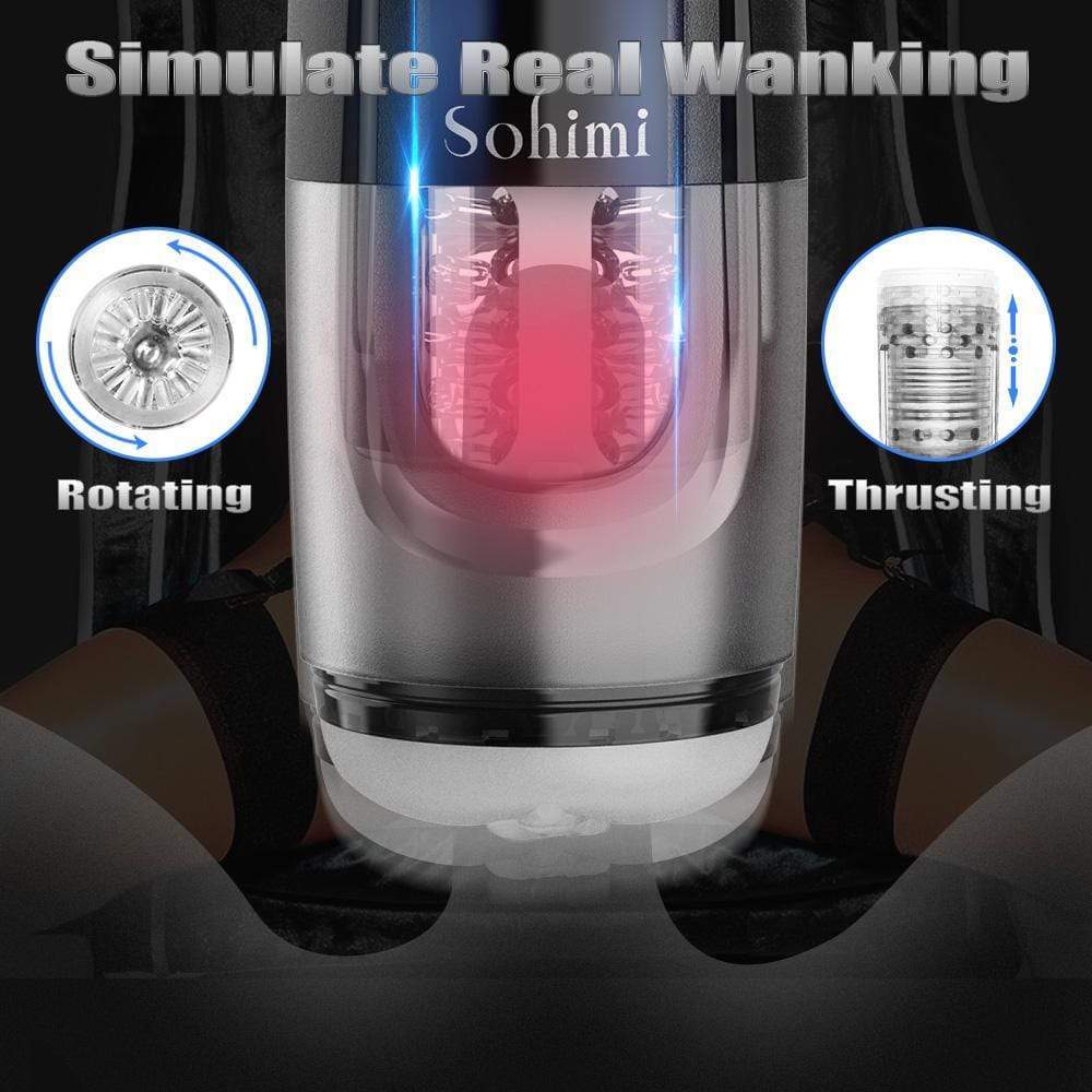 Simulate Real Hands Wanking Sex - Sohimi hands free masturbator provides a mind-blow sensation with 10 different rotating & thrusting modes. By moving up and down constantly, as well as the rotating motion, you can feel that a warm soft woman's hand is wanking your penis gently. Switch to the next mode, you can feel the strength stronger and the frequency faster. Choose one mode you like and just enjoy the amazing masturbation.