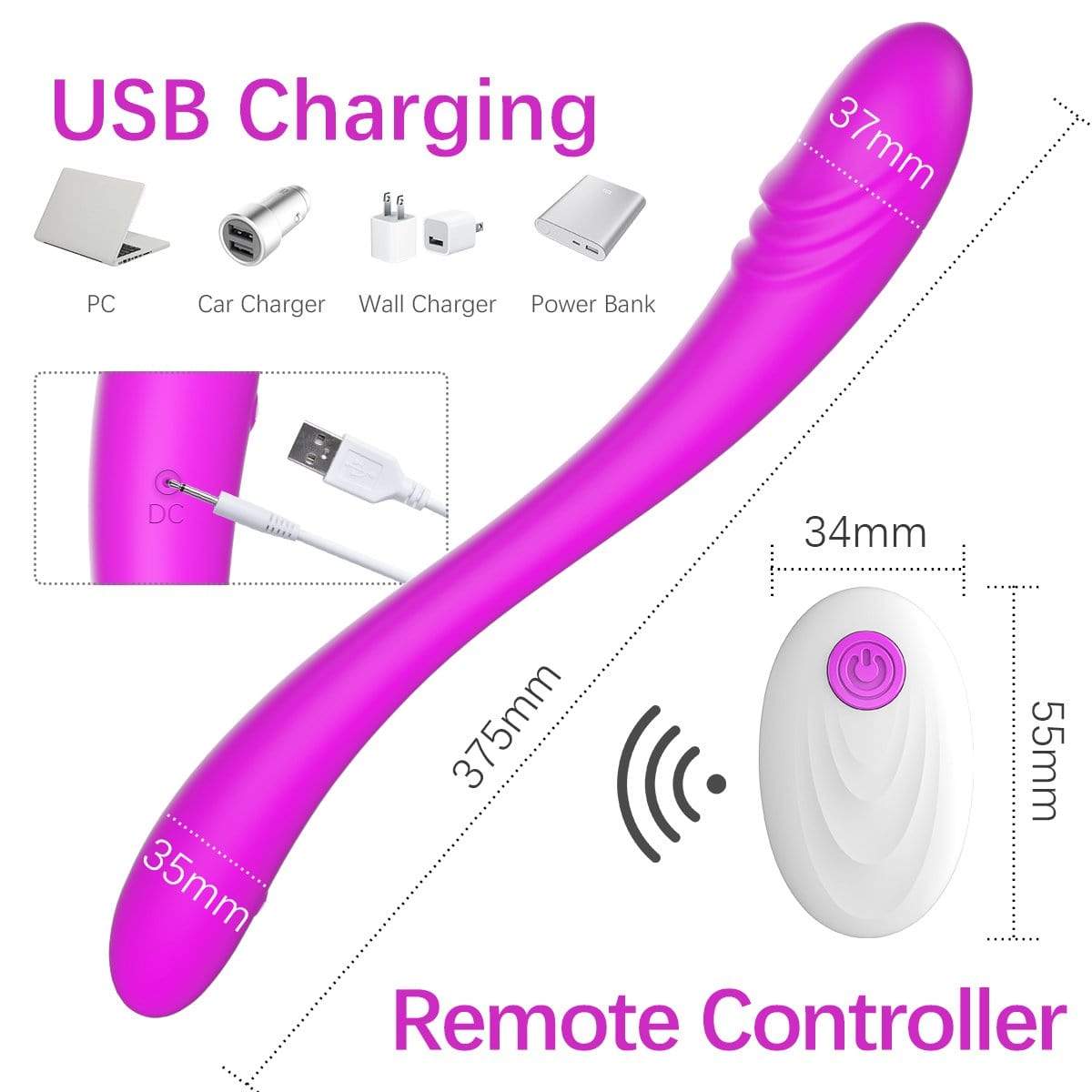 Waterproof & USB Charging - Fully covered with body-safe soft silicone, this lesbian double sided dildo is 100% waterproof which will be the best companion to have fun within the bathtub or shower. Moreover, it is easy to charge with the included USB cable. You can charge the toy by connecting to your phone charger, computer, power bank, or even a car charger.