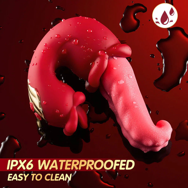 This toy features a unique dual-tongue design, with a larger tongue that is lifelike and soft to the touch, and powerful multi-speed vibration tapping, perfect for stimulating G-spot, lubricating it, and letting it kiss your lower lip passionately. The smaller tongue focuses on precise, targeted stimulation, such as nipples and clitoris.